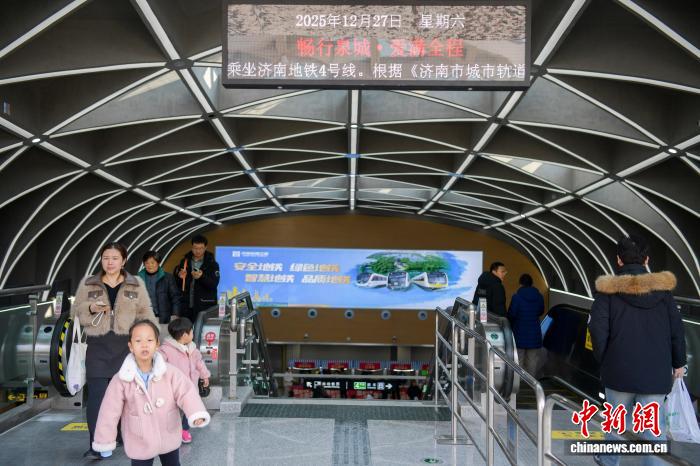 12月27日,市平易近趁坐济北天铁体味便利出止。中新社记者 弛怯 摄